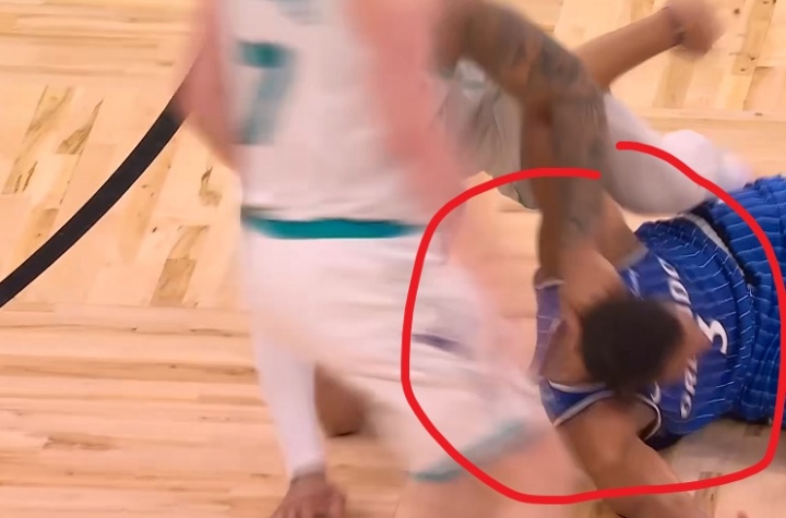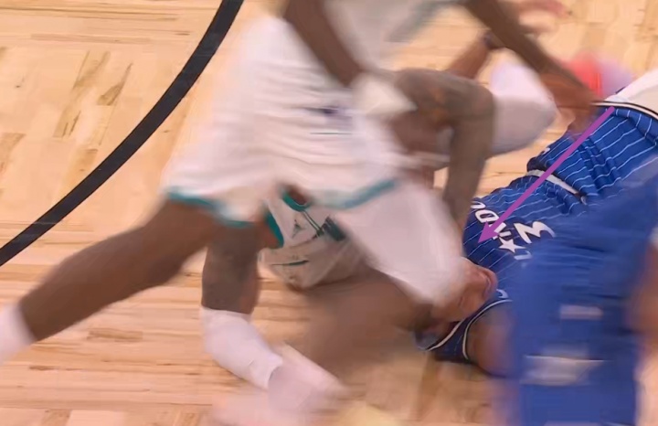 GIF-小桥跟贝恩倒地了,小桥有锁喉和按人的动作,被吹技术犯规!